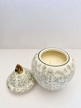 Hibiscus Blue and White Ceramic Temple Jar with Lid - Home Decor