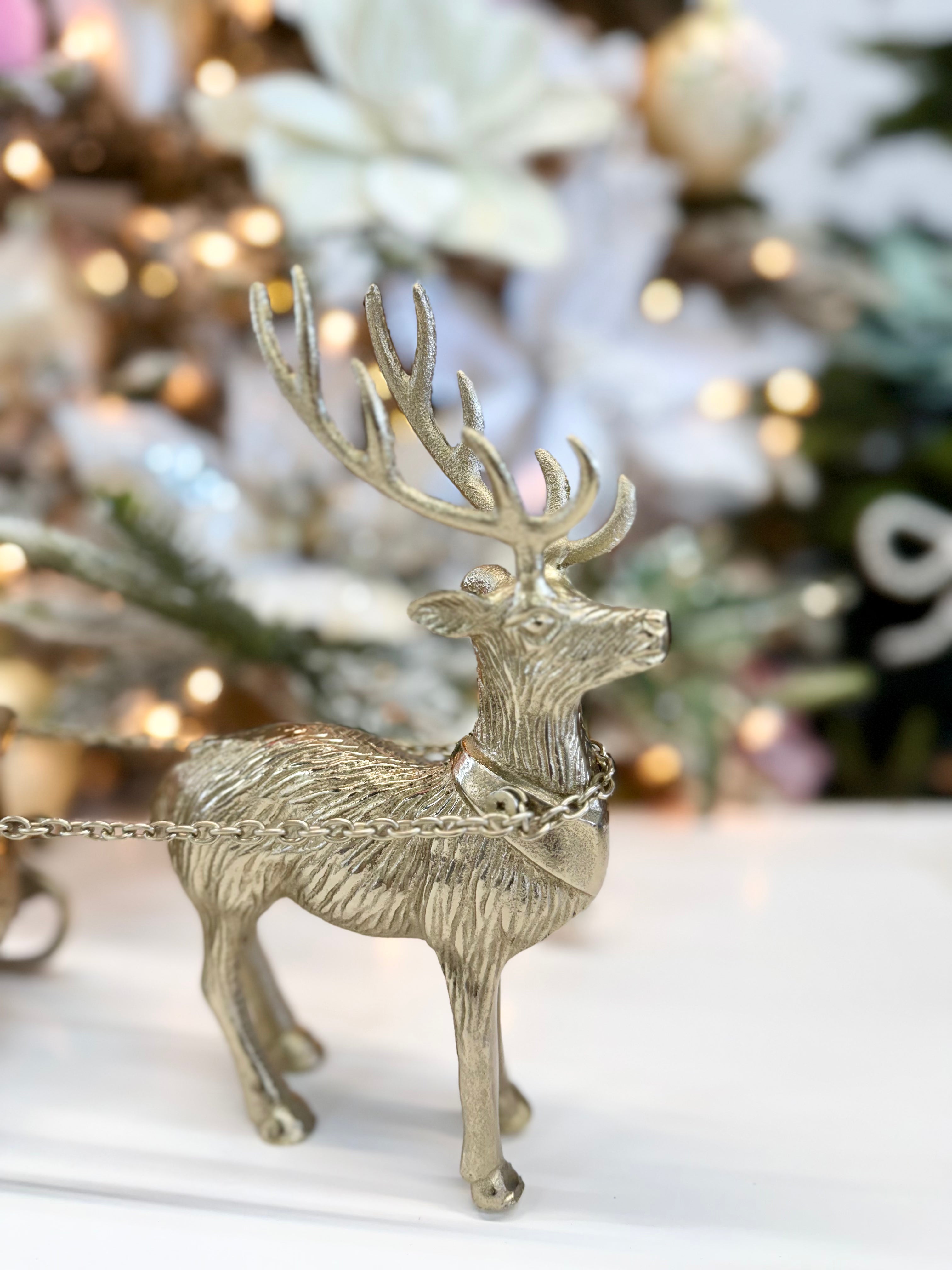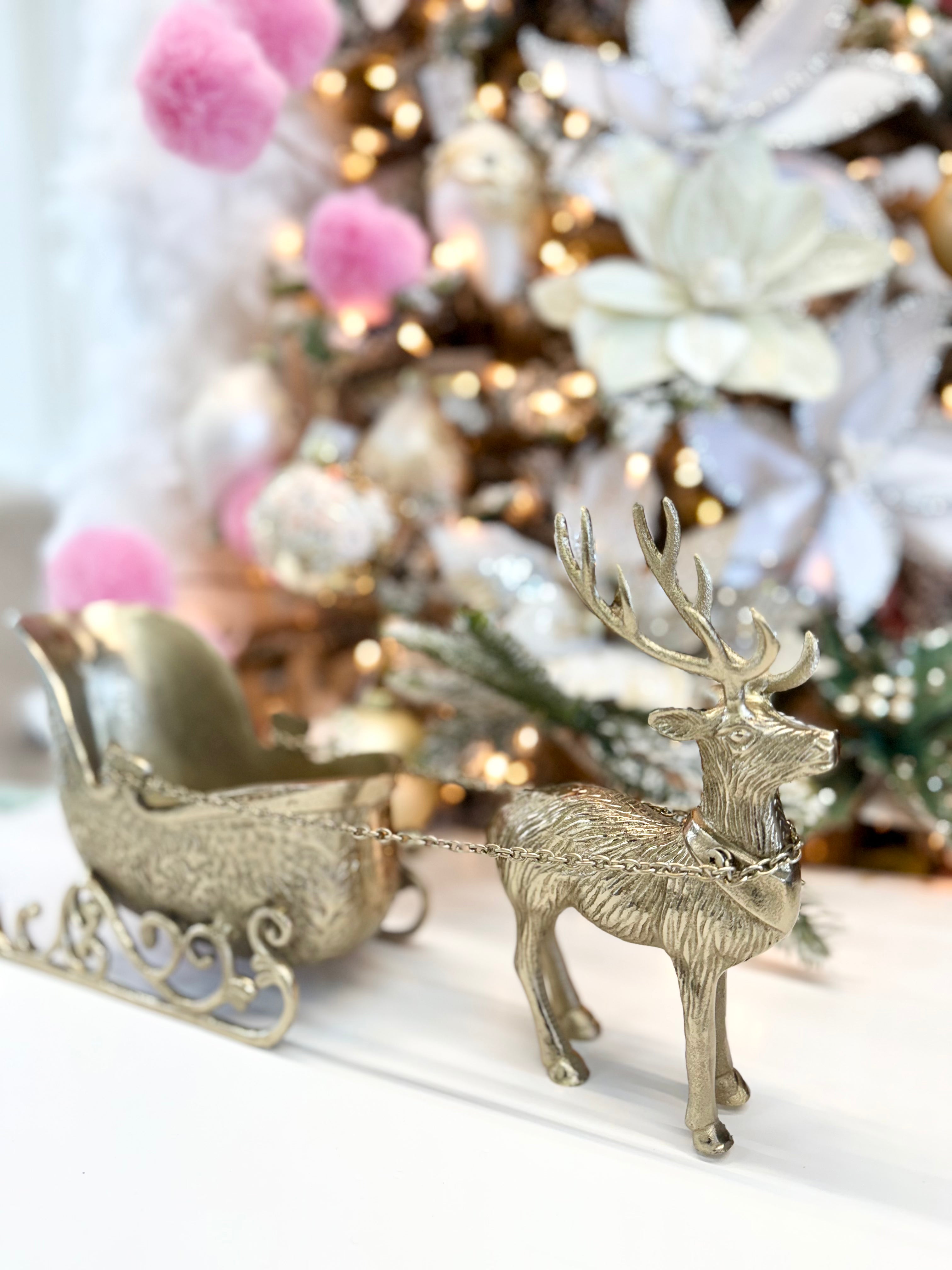 Add a touch of elegance to your holiday décor with this golden sleigh. Adorned with refined details, it radiates warmth and charm to any space. Perfect on a table or mantelpiece, it instantly creates a festive atmosphere. Its elegance and festive charm make it the ideal centerpiece for your end-of-year celebrations. Transform your home and let the magic of the holidays unfold.🎄