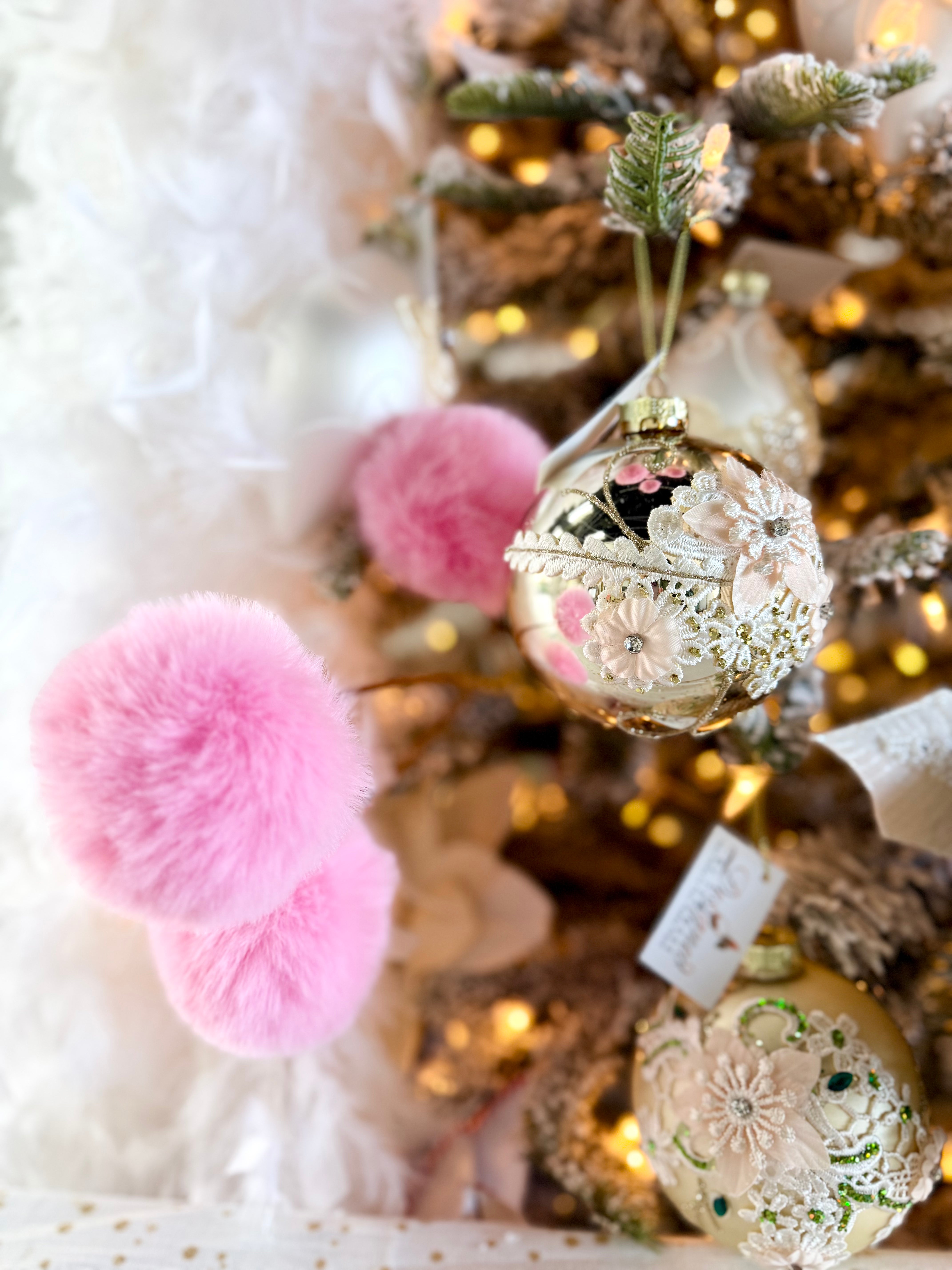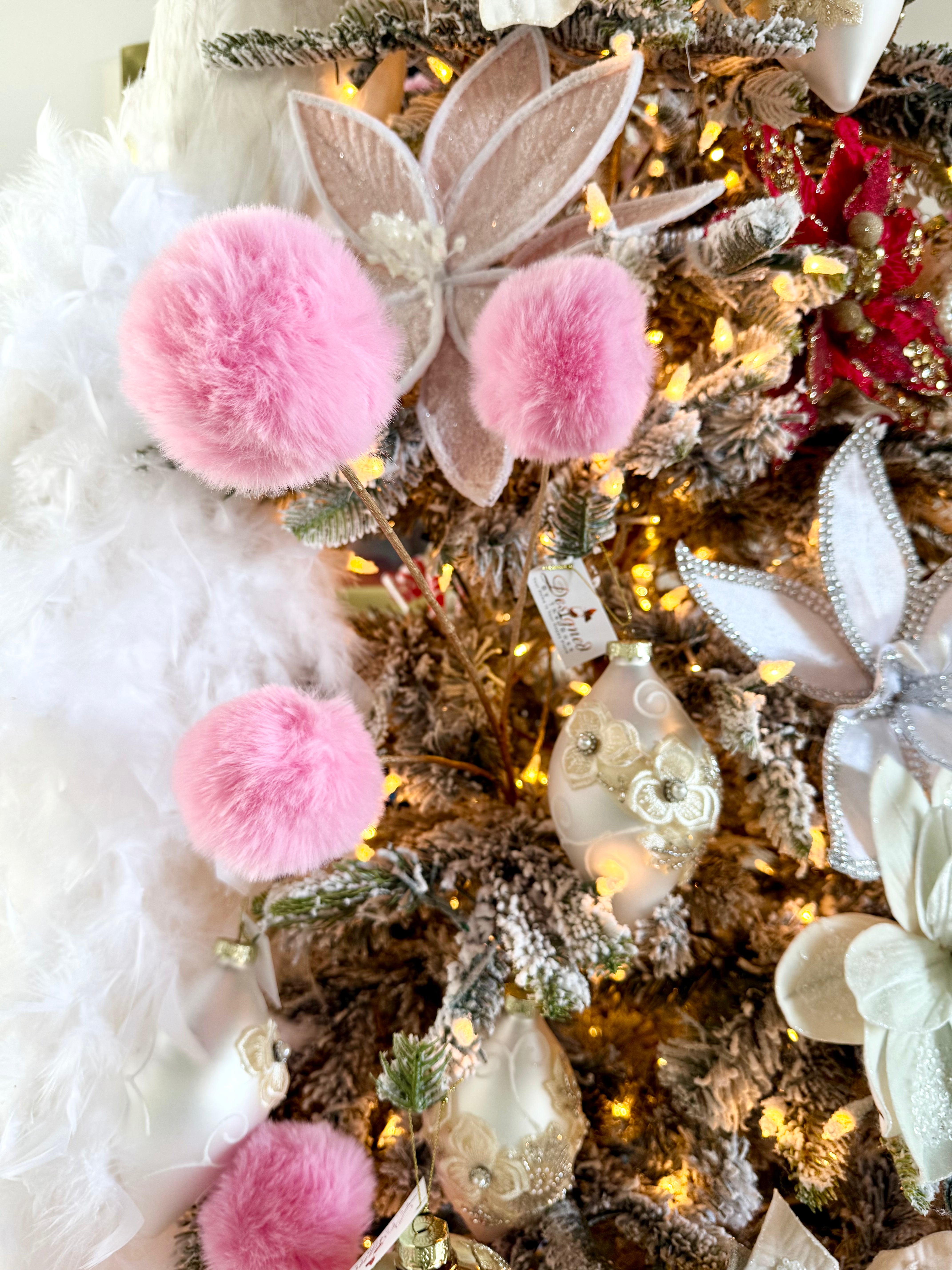 With its soft texture and pastel color, this pink pompom branch instantly creates a warm atmosphere. Incorporated into a Christmas tree or to create a beautiful centerpiece, it will add a touch of beauty to your home. It can also be used as a stake to fill gaps in your tree.