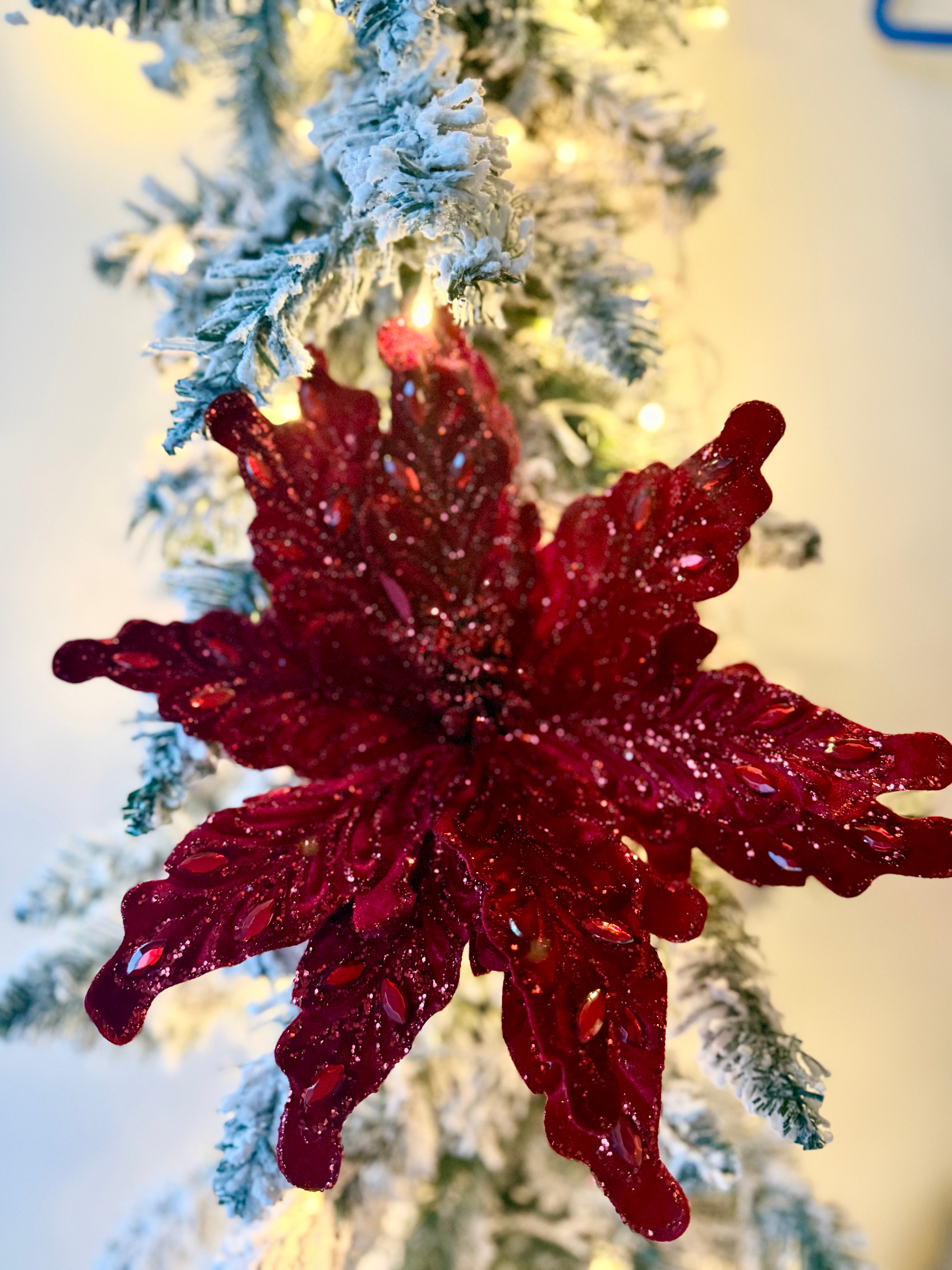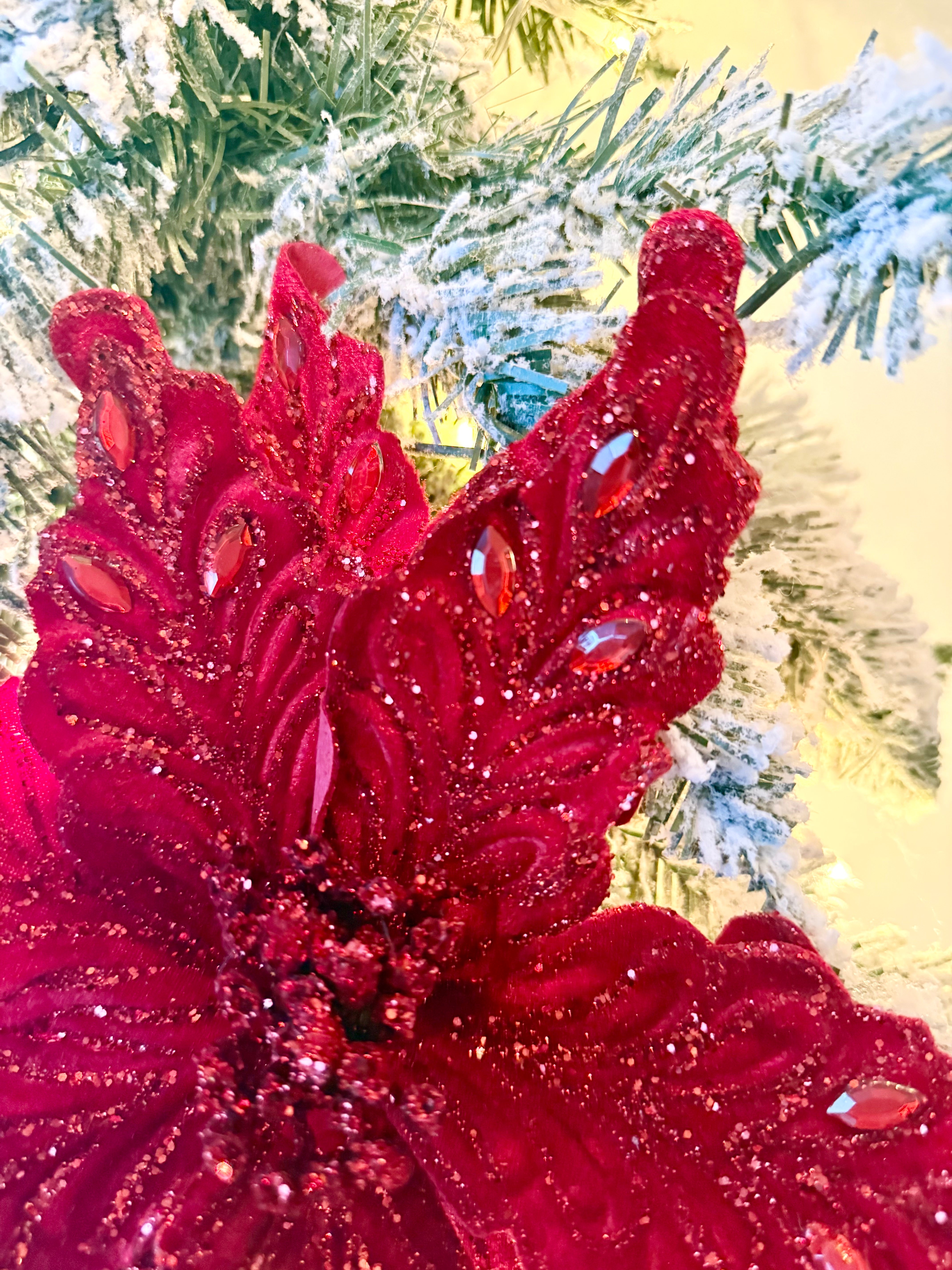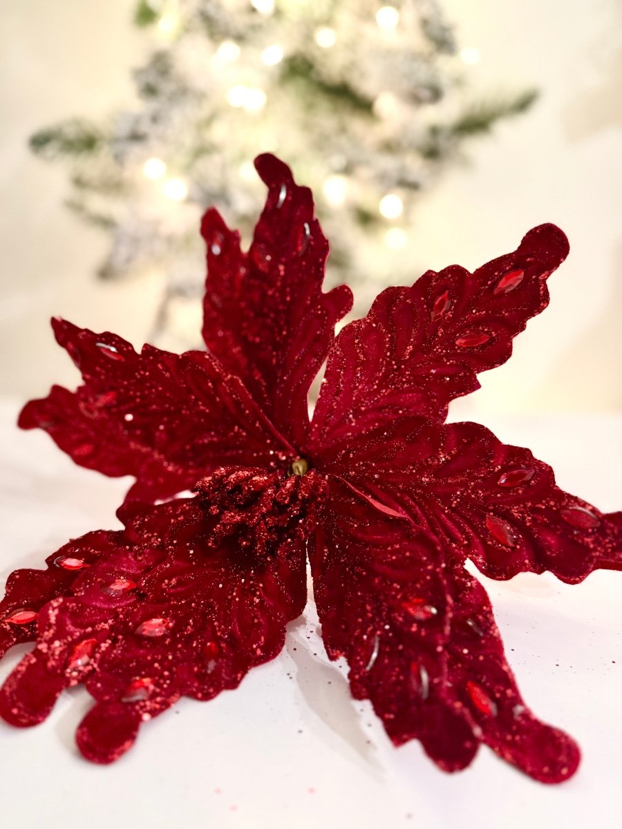 Unleash the full splendor of your holiday décor with our large velvet poinsettia stem. Standing 22inch tall, this exquisite piece, crafted from sumptuous velvet, brings unparalleled sophistication and elegance to any setting. Create a stunning centerpiece that captures the spirit of the holidays; this stem is suitable for any space. Elevate your style today and let your creativity flow. These stems promise to make your festive space unforgettable. Elevate your style today and make your holiday décor shine!✨