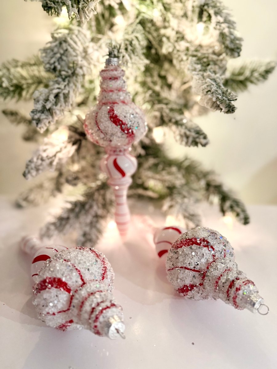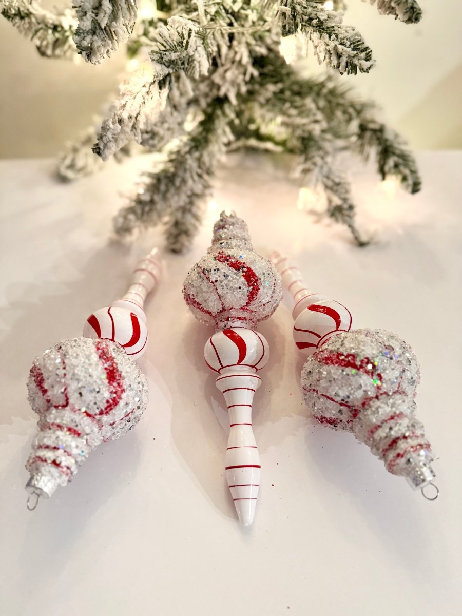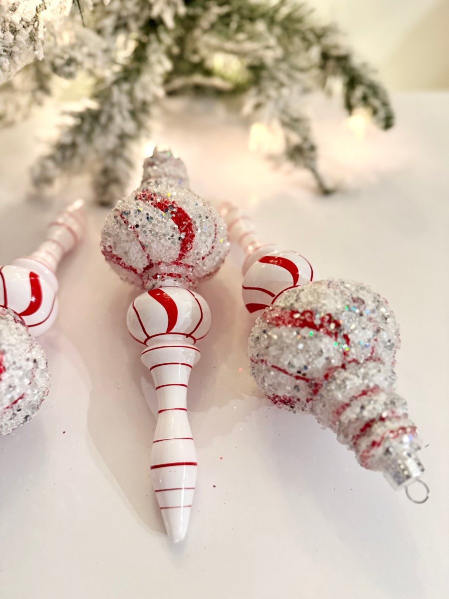 White & Red Teardrop Ornaments - Holiday Decor Pack of 3