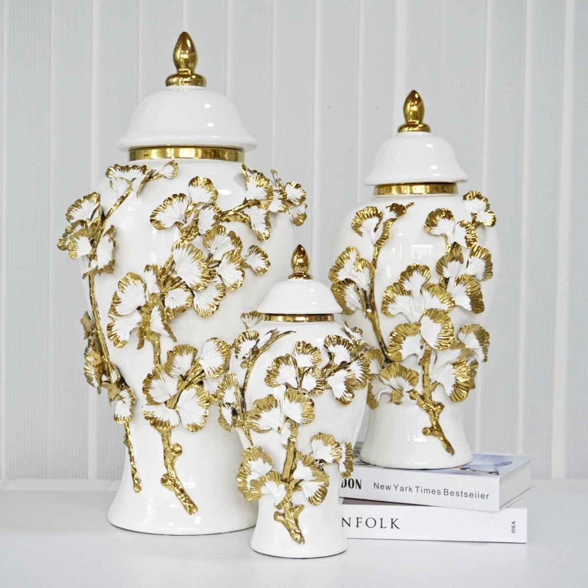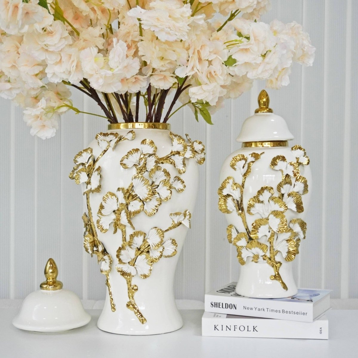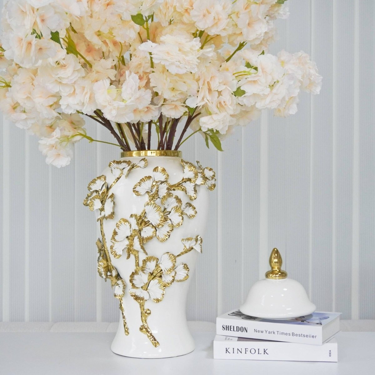 White and Gold Ginger Jar With Floral branches (Available in 2 size)