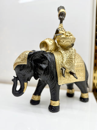 Black & Gold African Tribal Woman -Elephant Decor - Elegant Sculpture For Home Decor
