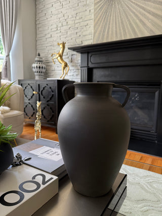 X-Large 3 Handle White Artisan Handcrafted Terracotta Vase