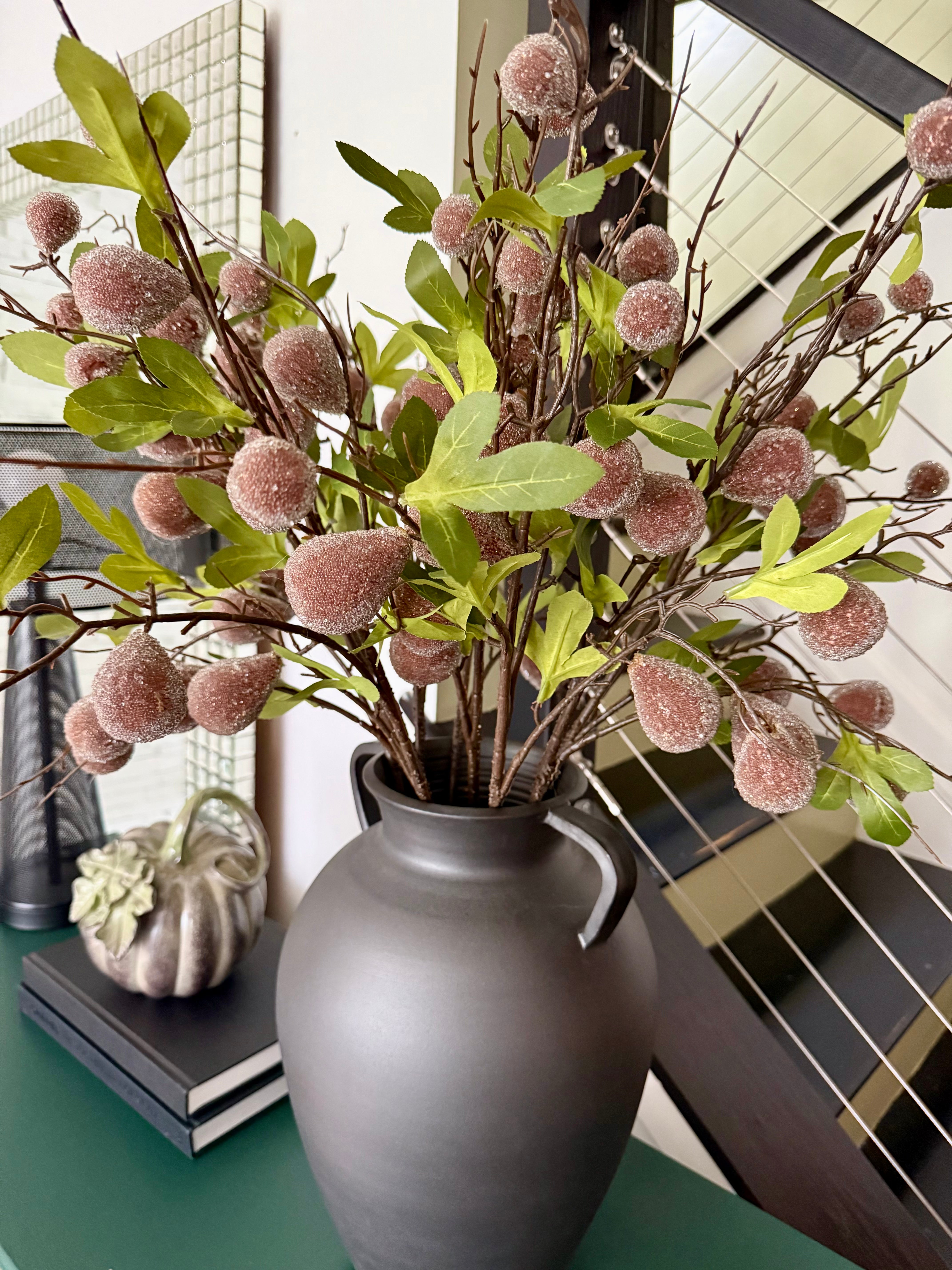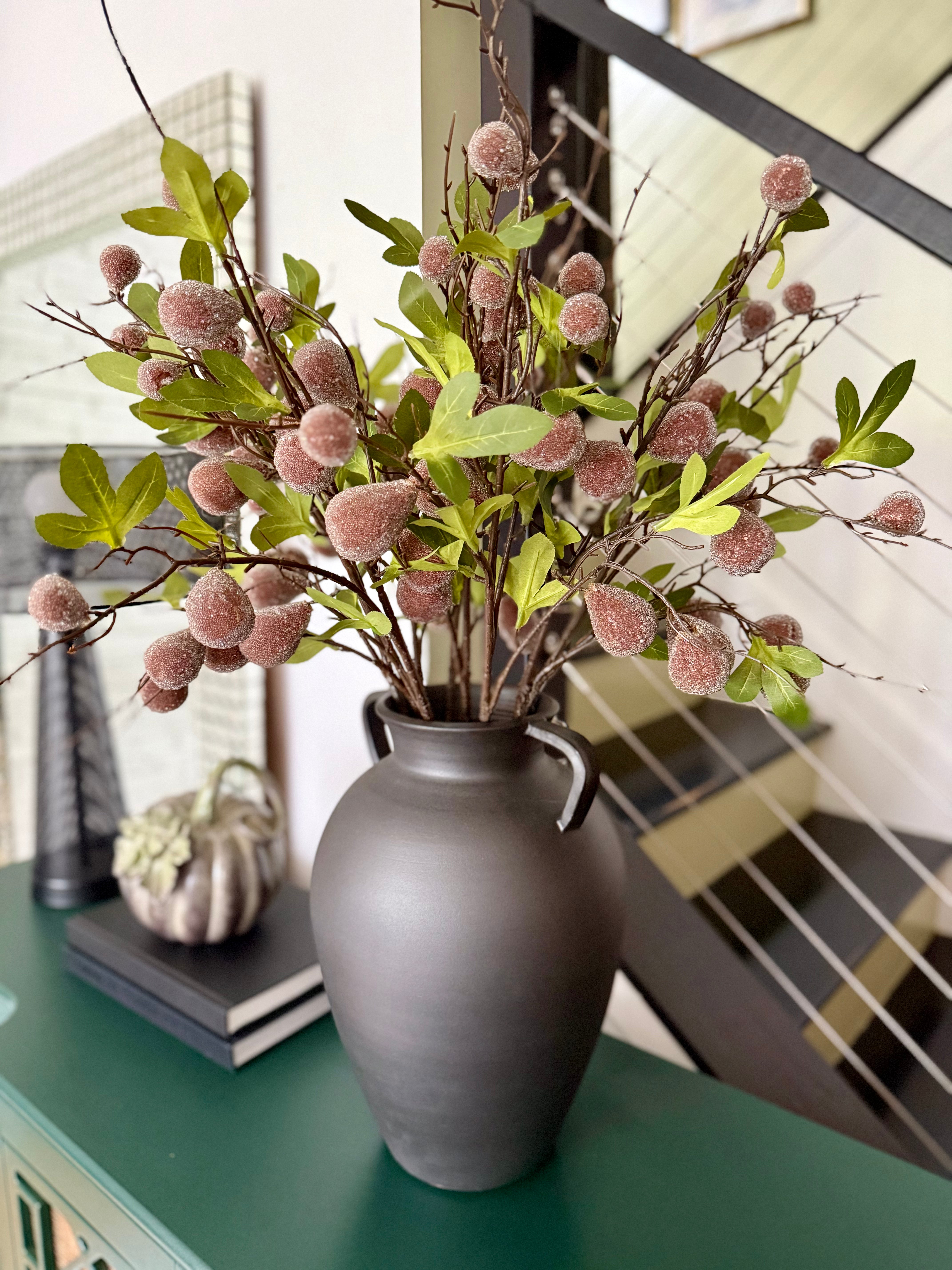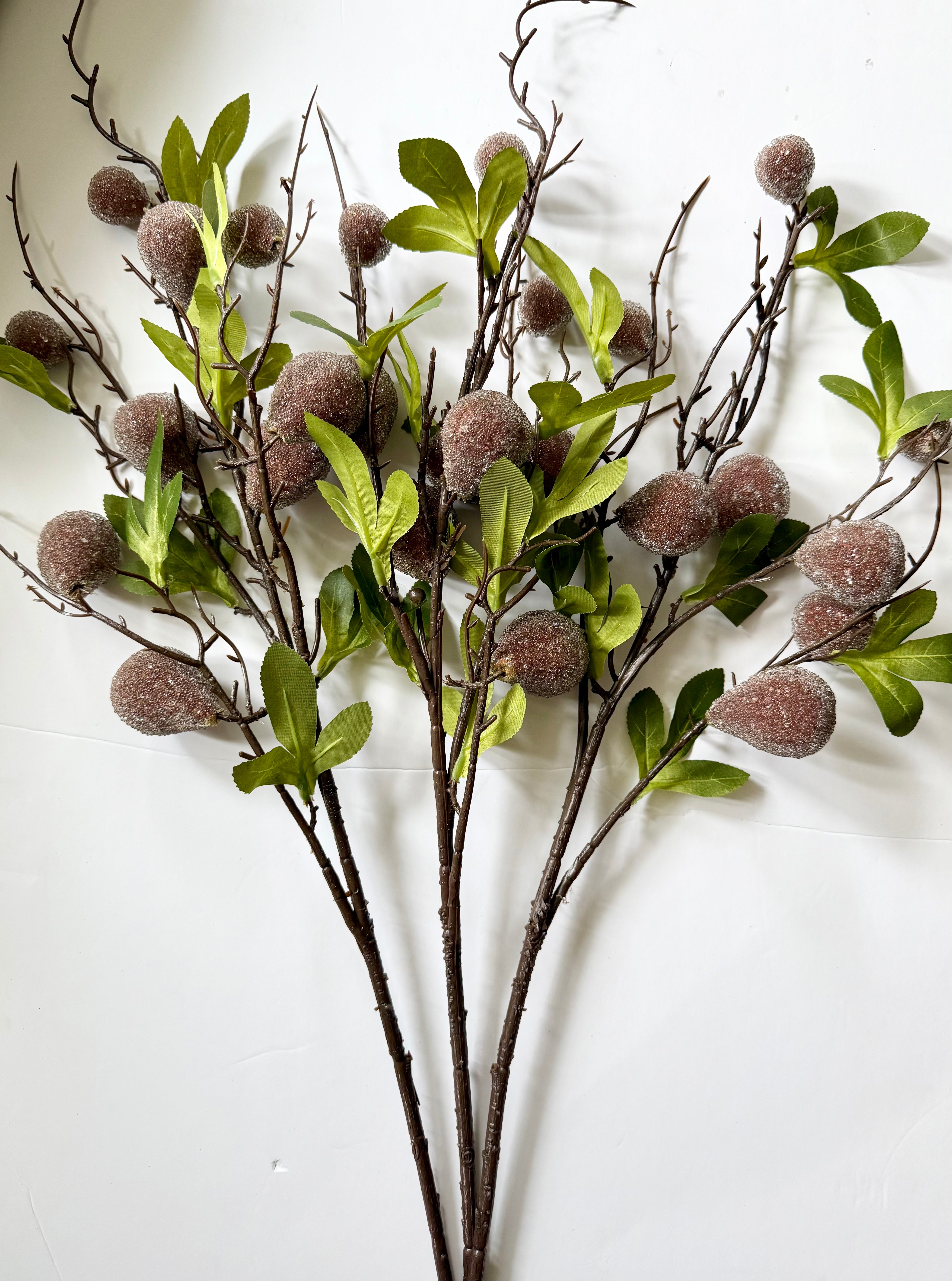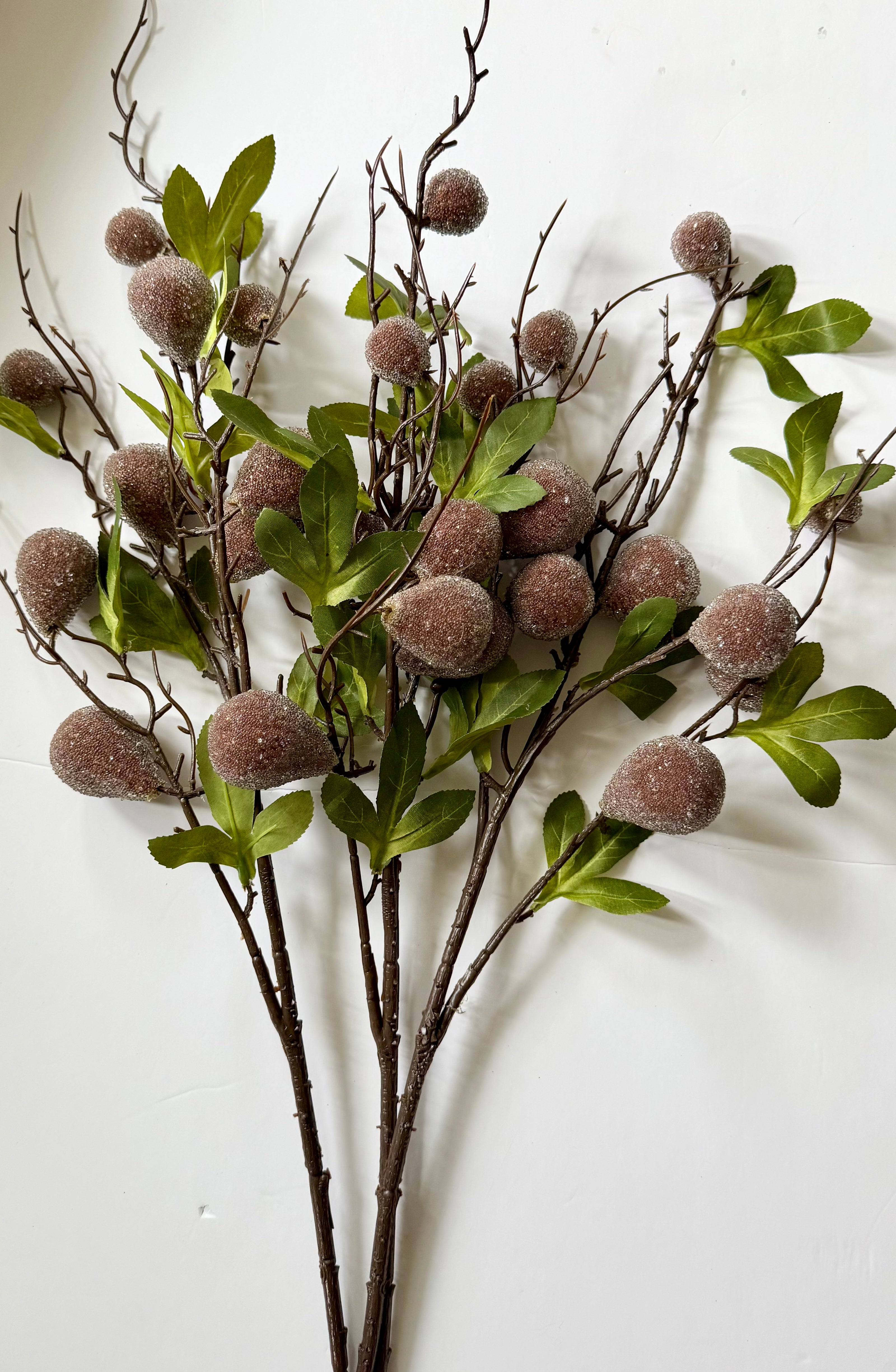 These brown artificial Crystal Ice Fig Branch Beaded Sugar is designed with high quality materials to last you longer, handpicked with you in mind. Each branch have been carefully sourced and curated to complement your home all year long. This adorable fruit branches can be displayed on their own or mixed in with your favorite floral blooms and greenery. Don't forget to shop our collection of vessels and vases to display your beautiful new bundle in. Your home is your happy place!