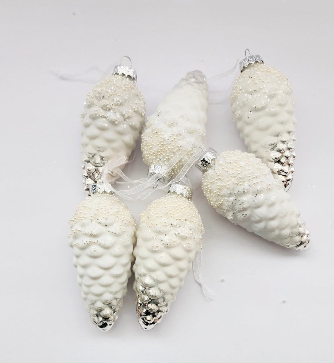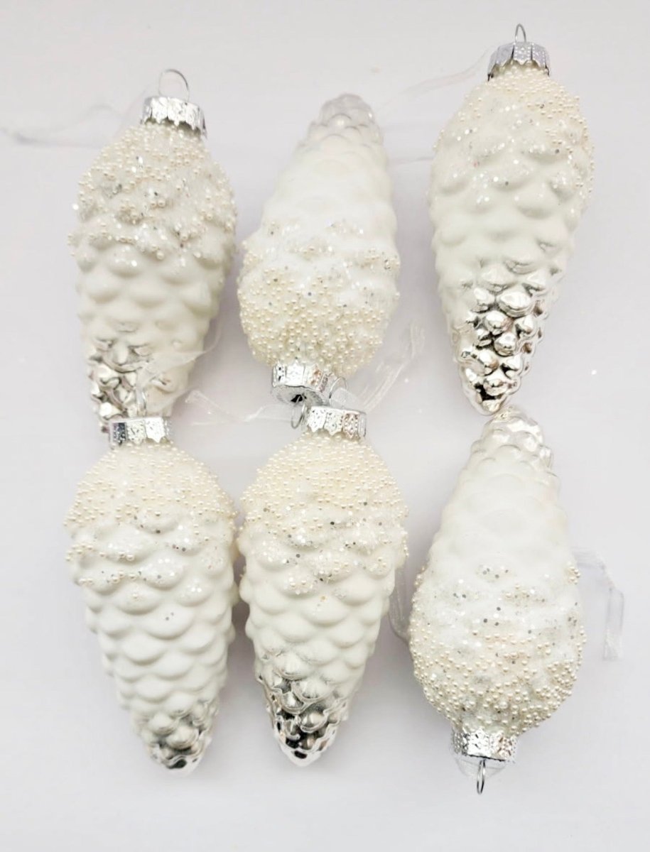 Glass Hanging Pinecone Ornaments (Pack Of 6)