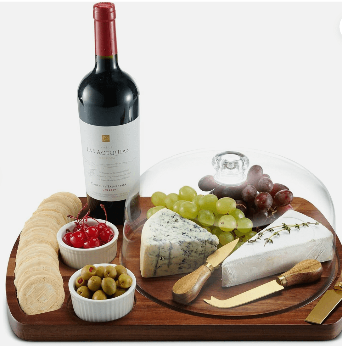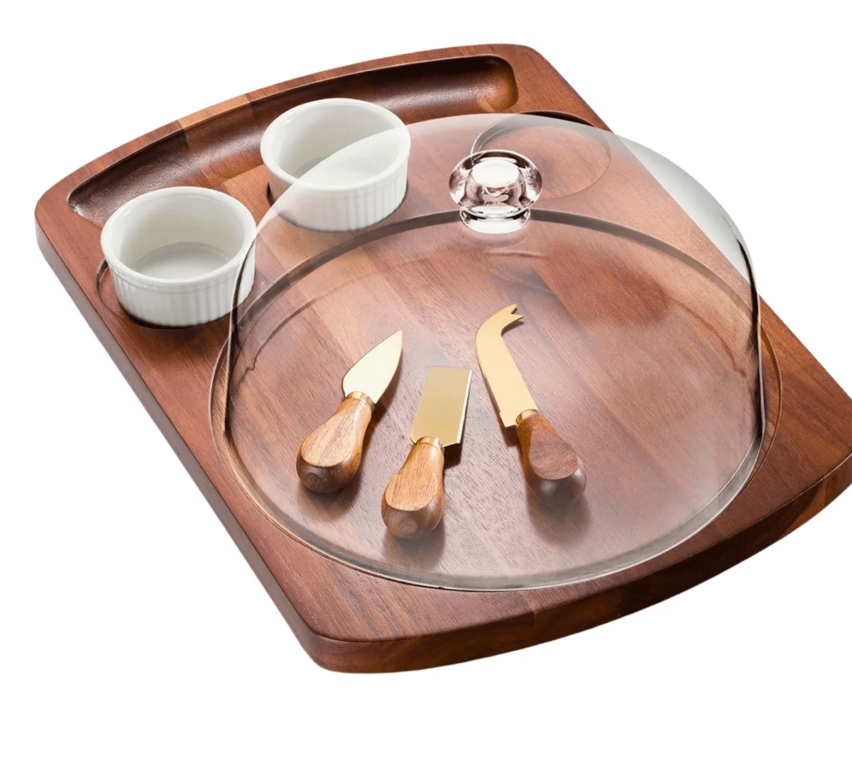 Welcome your guests with this natural wood serving tray and gold stainless steel accessories. Its smooth wood will make this decorative tray a must-have presentation piece. Beautifully crafted, it's perfect for hosting a wine and cheese party, all in one tray. This set includes everything you need to create a delicious presentation and enhance your wine tasting with ease. *Your Home is Your Happy Place* DesignedBy V.BJ