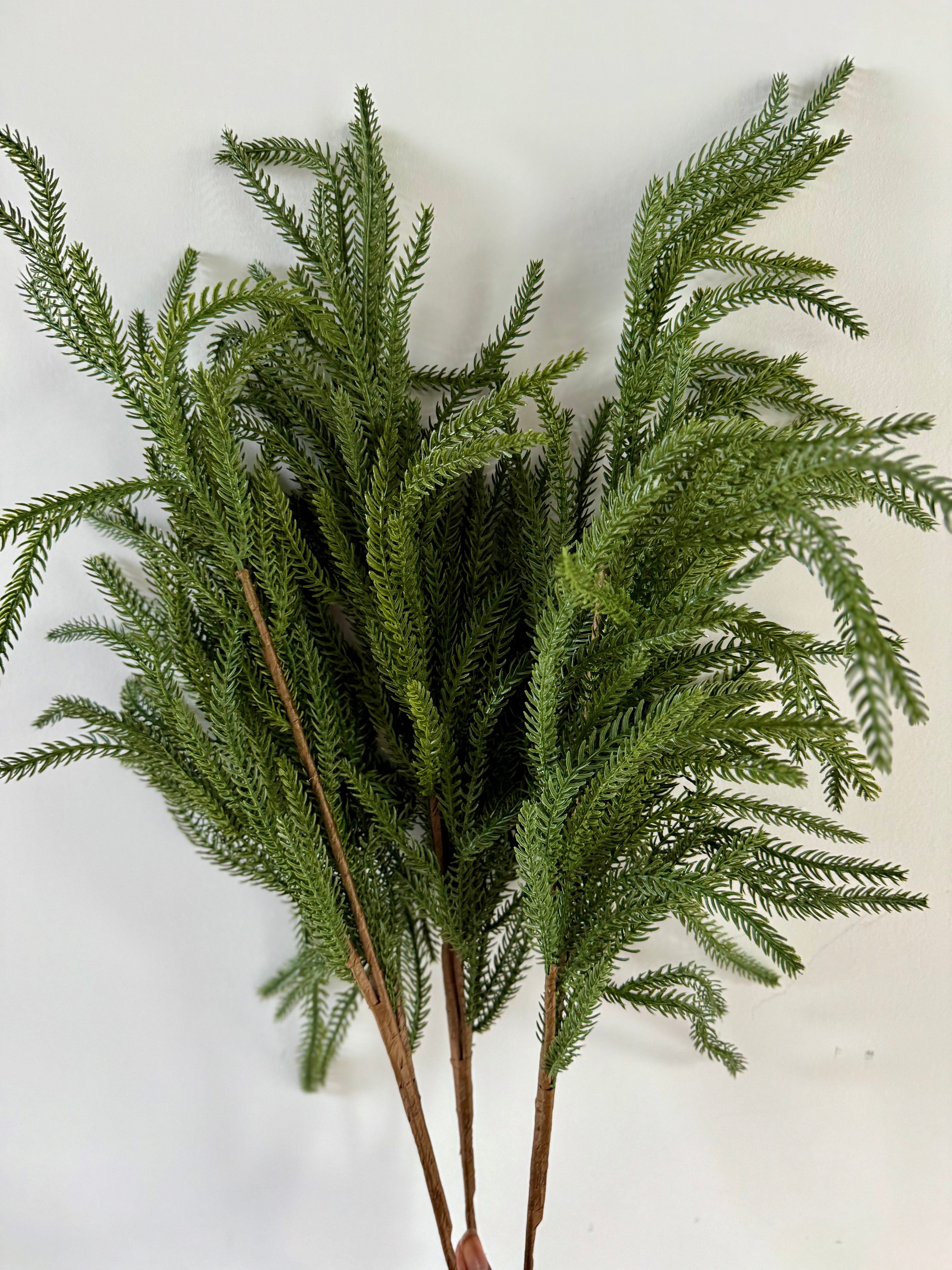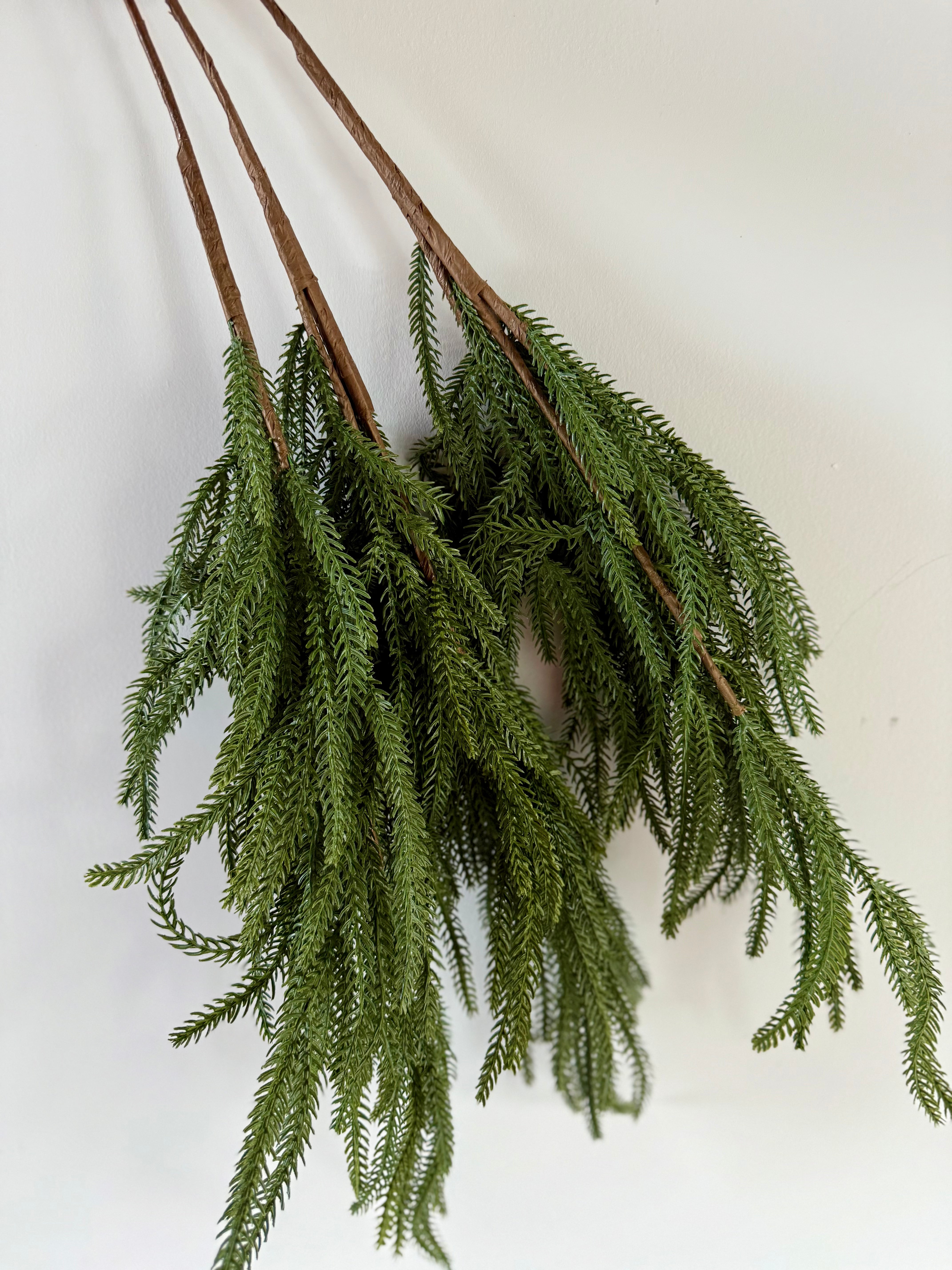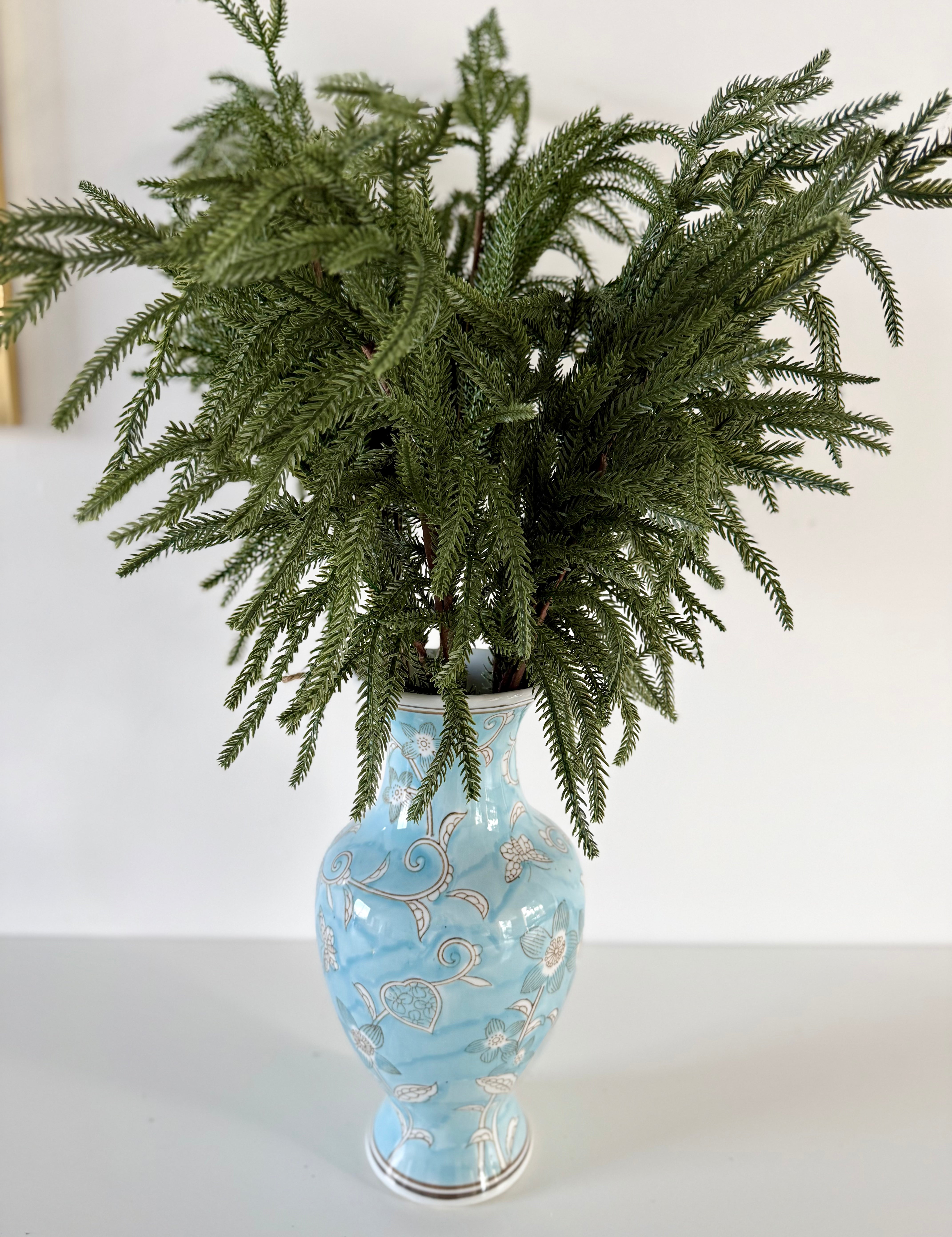 Enhance your fall and winter decor with this captivating and authentic bouquet of three artificial cedar branches. Its realistic botanical details mimic the beauty of nature and make this branch the perfect stem to add a touch of seasonal charm to your floral arrangements. Arrange a few of these artificial branches in one of our beautiful vases for a minimalist centerpiece that will bring lasting charm to any room.