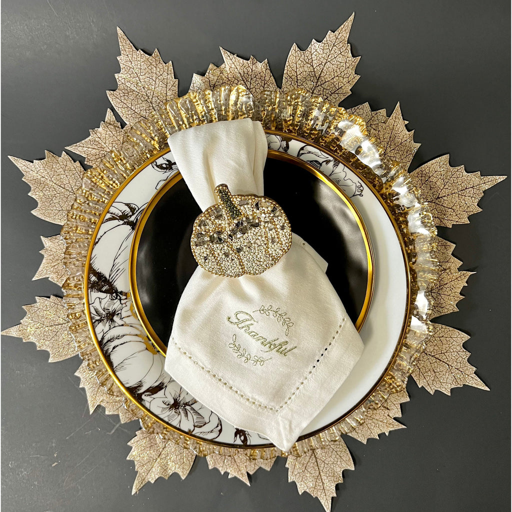 Maple Leaf Rhinestone Napkin Rings Set Of 4